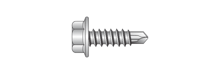 Hex Head Metal Tip Screws are used for joining metal to metal which usually requires greater strength and torque input. This type of hex head screw is used for general fastening where a watertight seal is not necessary. These screws feature a drill point tip, meaning it can drill a starting hole so the threads of the screw can cut into the material, securing it into place.