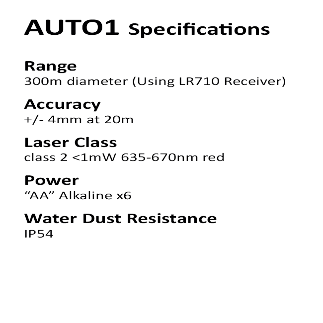 The AUTO1P package is perfect for general site levelling, fencing, landscaping, drainage, and any outdoor application where a complete, portable laser kit is needed. Great value for contractors who want a no-fuss setup.