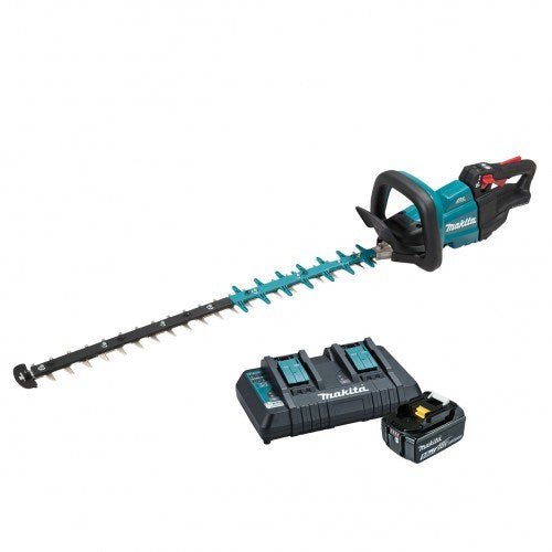 Makita 18V BRUSHLESS 750mm Hedge Trimmer Kit, specialised blade for increased runtime - Includes 5.0Ah Battery & Dual Port Rapid Charger DUH751PT