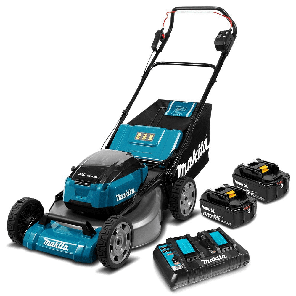 Makita 18Vx2 BRUSHLESS 534mm (21") Lawn Mower Kit, Heavy Duty Steel Deck - Includes 2 x 6.0Ah Batteries & Dual Port Rapid Charger" DLM535PG2