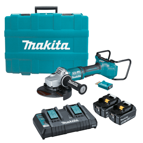 Makita 18Vx2 BRUSHLESS AWS 180mm Paddle Switch Angle Grinder Kit - Includes 2 x 5.0Ah Batteries, Dual Port Rapid Charger & Carry Case DGA701T2U1