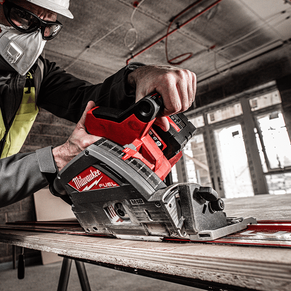 The Milwaukee M18 Track Saw is designed for the professional carpenter and renovator. This M18 FUEL 165mm Track Saw from Milwaukee delivers the Power to rip solid hardwoods, has over 90% dust collection efficiency and provides the portability and precision users demand from a Track Saw. The Powerstate Brushless motor provides 5,600 RPM for constant finish quality and clean cuts. The Milwaukee Plunge saw comes in an XL PACKOUT Tool Box to provide extra protection and convenient transportation on the worksite