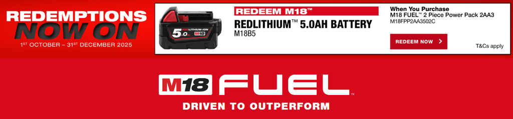 - M18 REDLITHIUM-ION 2.0 Ah / 4.0 Ah / 5.0 Ah / 6.0 Ah / 9.0 Ah battery packs recharge in 26 min / 47 min / 59 min / 68 min/ 95 min or less