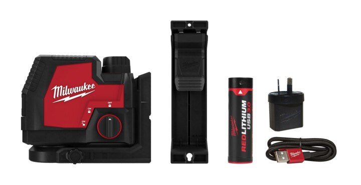 Milwaukee REDLITHIUM? USB Rechargeable Cross Line Laser Kit (1x 3.0Ah) L4CLL-301C