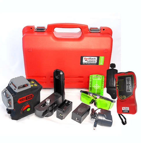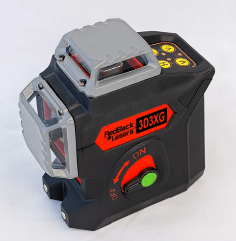 The RedBack 3L360G features Heavy-duty construction with rubberised housing, pendulum lock, and cast metal laser output covers. The 3D3XG boasts pulse mode for use with the included outdoor receiver and manual mode for setting the lines at whatever angle you require.