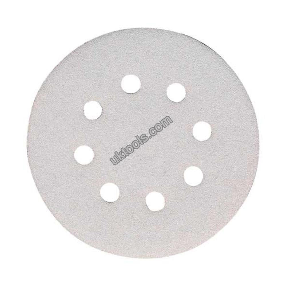 Abrasive White Disc* will also fit Bosch B&D DeWalt AEG Milwaukee Metabo Festool For machines: BO5012 BO5010 BO5021, SIZE: diameter 125 mm, Qty/ Pack: 10, Velcro: Y, Hole Pattern: 8, Grit: 240, P33401