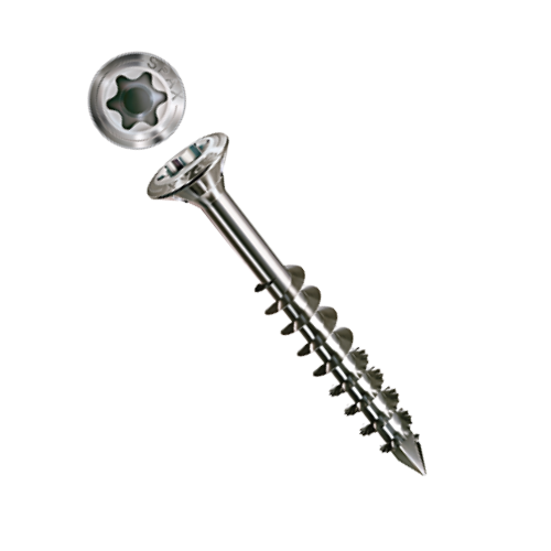 Raised countersunk head with milled ribs: Clean, flush sinking of the screw head.